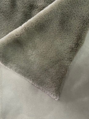 Лицевая сторона дублированного материала представлена качественной искусственной замшей оливкового цвета, обратная сторона это искусственный мех кролик также оливкового цвета.