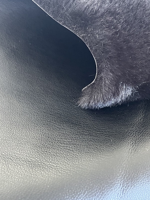 Мех сдублирован с экокожей чёрного цвета, которая имеет прекрасный внешний вид и также приятна на ощупь. Слои искусственного меха и экокожи надёжно скреплены между собой в результате специального процесса склеивания, дублёночный мех полностью готов для производства готовых изделий.